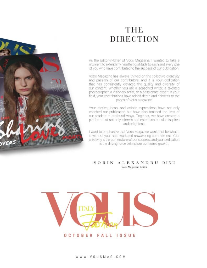 © 2026 VOUS ITALY Magazine. International fashion editorials, photography & creative content. All rights reserved. VOUS GROUP..