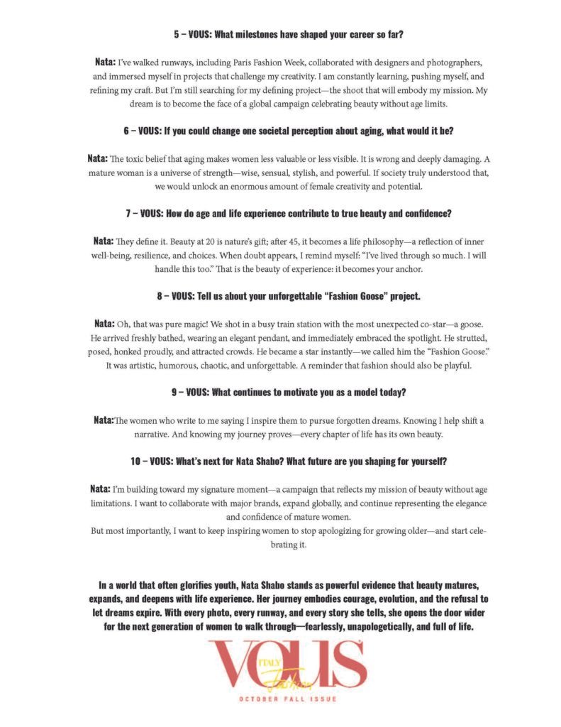 My name is Nata Shabo, and at 51, I proudly call myself an age-positive model. I’ve only been in the industry